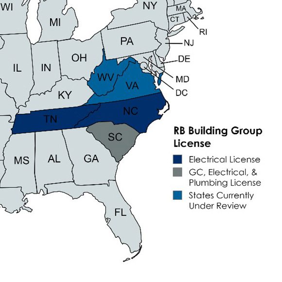 RB Building Group is, located in Myrtle Beach, SC and is licensed in SC, NC and TN. We complete a variety of construction projects in all these states and continue to expand our operations in the Southeast.